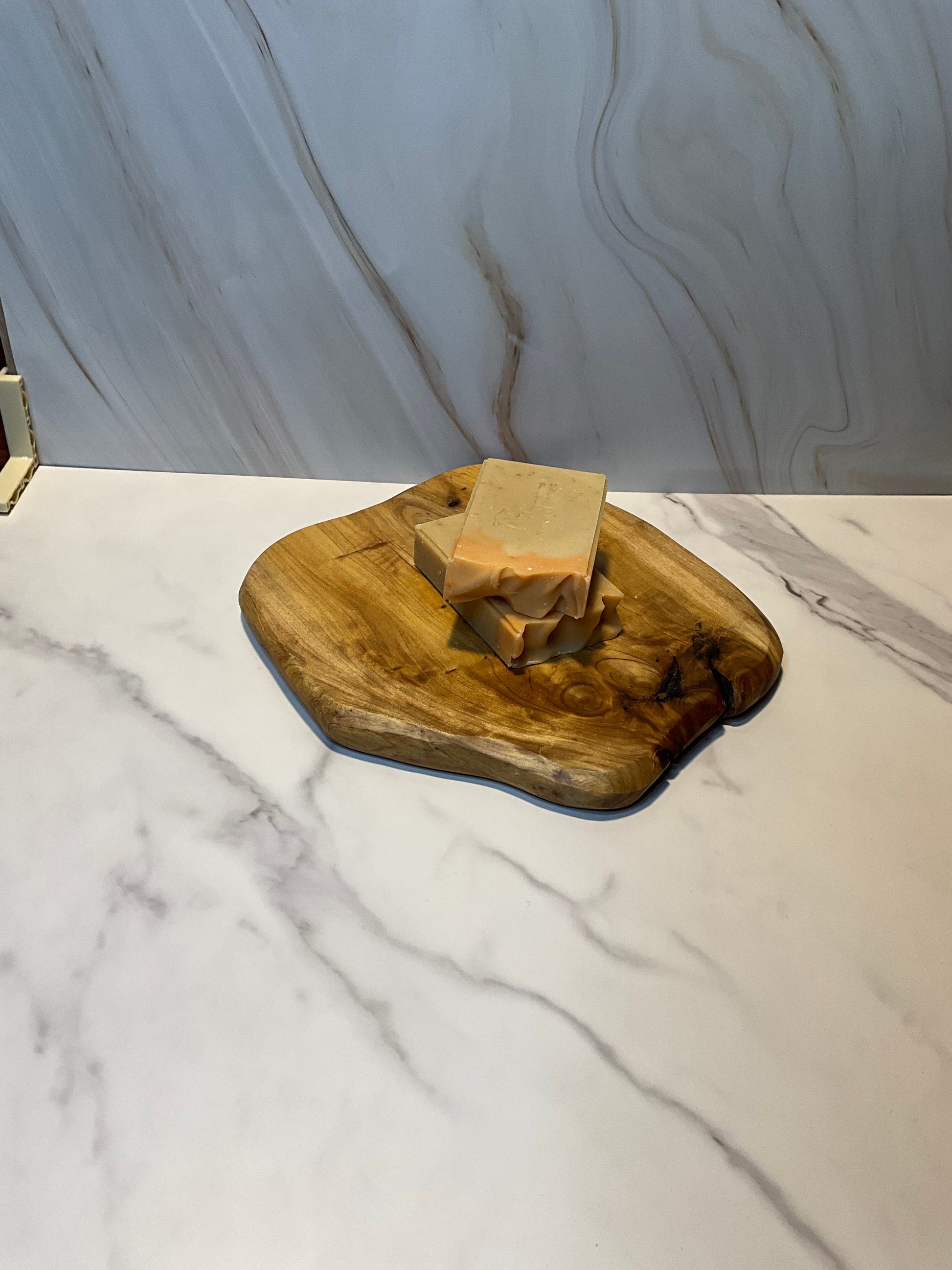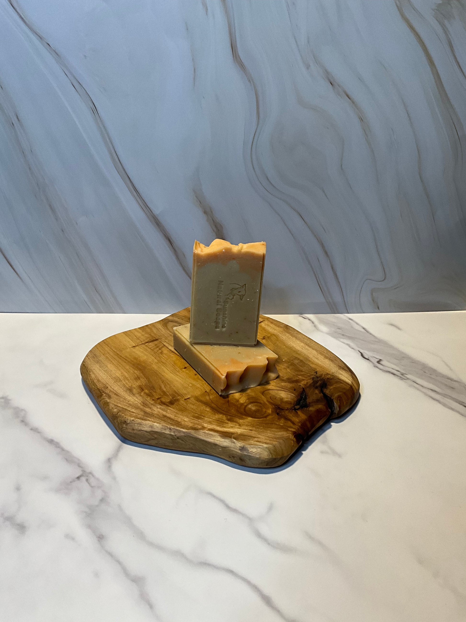 Ingredients: castor oil, coconut oil, olive oil, shea butter , beef tallow, goat milk, essential oil, orange peel